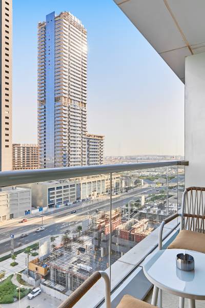 bnbme | JVC 现代单间公寓,带泳池和城市景观(bnbme | Modern Studio in JVC w/ Pool & City View)