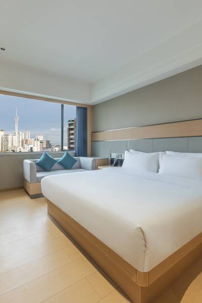 客房布置温馨雅致,床品柔软亲肤