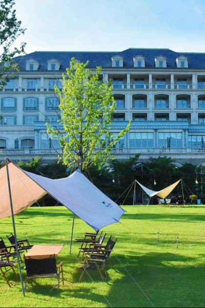 云上草原下的欧式古堡星空露营营地