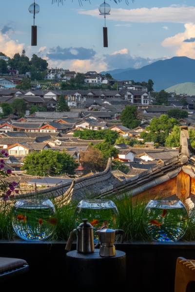 网红露台,赏古城全景,庭院鲜花不败